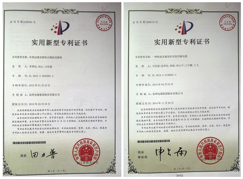 昆明電纜集團(tuán)股份有限公司擁有一支技術(shù)門(mén)類齊全、學(xué)科結(jié)構(gòu)合理,具有開(kāi)拓創(chuàng)新精神的產(chǎn)品研發(fā)隊(duì)伍,建立了有效的激勵(lì)創(chuàng)新機(jī)制,建有多個(gè)試驗(yàn)室,具有1000多臺(tái)套研發(fā)試驗(yàn)設(shè)備,形成了較強(qiáng)的產(chǎn)品研發(fā)能力。企業(yè)技術(shù)研發(fā)主要為研究電纜新產(chǎn)品、科研項(xiàng)目、新技術(shù)、新工藝及新材料應(yīng)用。同時(shí),企業(yè)還同國(guó)內(nèi)一些著名高校、研究所合作,研究、開(kāi)發(fā)新技術(shù)和新產(chǎn)品,先后開(kāi)發(fā)出多個(gè)具有國(guó)內(nèi)領(lǐng)先水平,適銷對(duì)路的電線電纜產(chǎn)品。近年來(lái)承擔(dān)省市科技項(xiàng)目多個(gè),公司建有云南省電纜工程技術(shù)研究中心、云南省工業(yè)產(chǎn)品質(zhì)量控制和技術(shù)評(píng)價(jià)實(shí)驗(yàn)室、昆明市電線電纜工程技術(shù)研究中心、昆明市阻燃耐火電纜創(chuàng)新團(tuán)隊(duì),是云南科技小巨人企業(yè)和云南省創(chuàng)新型企業(yè)。能按國(guó)際(BS、JIS、VDE、IEC)標(biāo)準(zhǔn),國(guó)家標(biāo)準(zhǔn)及用戶特殊要求設(shè)計(jì)、制造各種電線電纜。